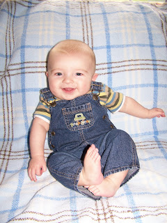 Wow! Jacob slept through the night.... in his crib. Dan and I asked each other this morning if the other had gone in to soothe him at all during the night and neither of us had. I can't tell you how good it feels to have a full night's rest. My first thought this morning was that something must be wrong with him because he slept a lot even before putting him to bed last night and I had to wake him up this morning. He has been sleeping more the last couple of days, so either he is just extra tired or maybe in a growth spurt. Whatever the reason, I'll take it!!